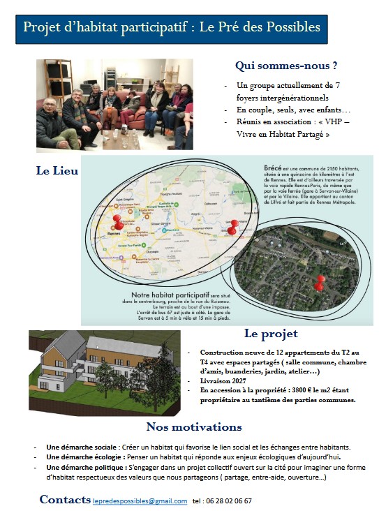 Nous sommes un groupe de 7 foyers, nous menons un projet d’habitat partagé sur la commune de Brécé.