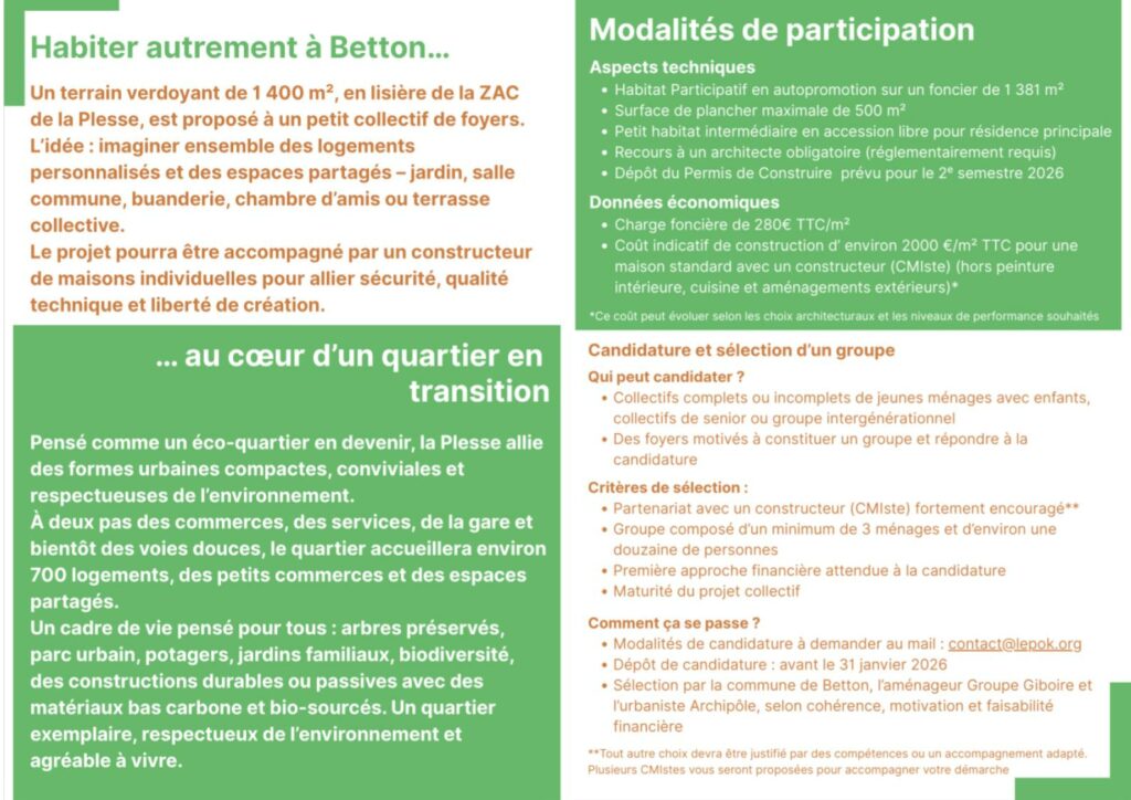 Réunion Publique : Appel à manifestation d’intérêt pour un projet d’Habitat Participatif en autopromotion à Betton !
